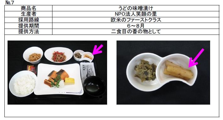 | H25.7.15 | ANA国際線ファーストクラスの機内食に弊社の「ウドの漬物」が採用されました。 |